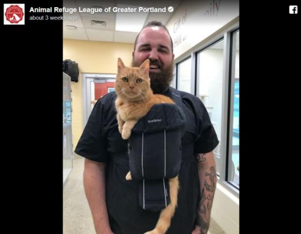 Robert Weimer a găsit o metodă ingenioasă de a-l liniști pe prietenul lui miorlăitor și de a-și face treaba în același timp. El l-a pus pe Dougie într-un ham special, fiind nevoit să-l care peste tot cu el.