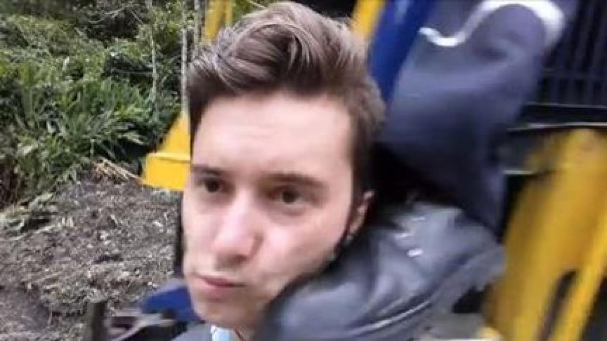 Tânărul a postat pe internet filmuleţul care surprinde întâlnirea sa cu conductorul trenului. Sau doar cu piciorul acestuia.