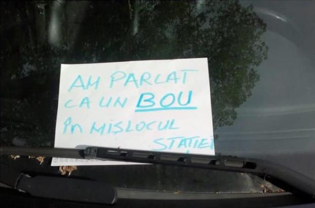 Bărbatul i-a pus șoferului un bilețel în parbriz, pe care era scris mesajul ”Am parcat ca un bou în mișlocul stației”.