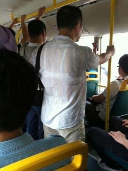În China nimic nu ar trebui să ne mai surprindă. Dar această fotografie, realizată într-un autobuz din Shanghai, pare incredibila. Acest bărbat şi-a arătat fără să vrea cel mai mare secret al vieţii sale intime, şi obiceiul pe care îl are atunci când nu îl vede nimeni.