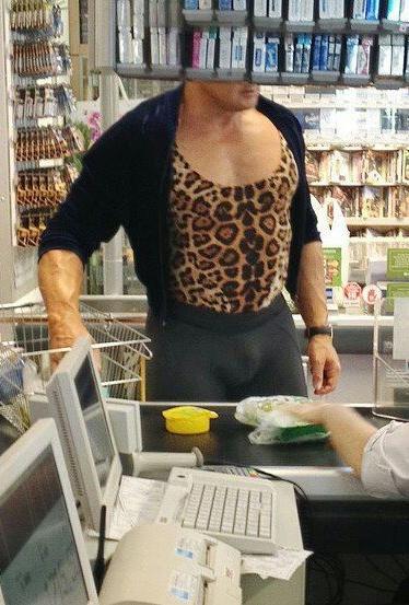 Ce se întâmplă atunci când programul s-a terminat şi trebuie să meargă să facă cumpărăturile? Un rus, mare cât un munte şi plin de muşchi, a mers la magazin într-o pereche de colanţi şi cu un body animal print, mulat, mulat, mulat.