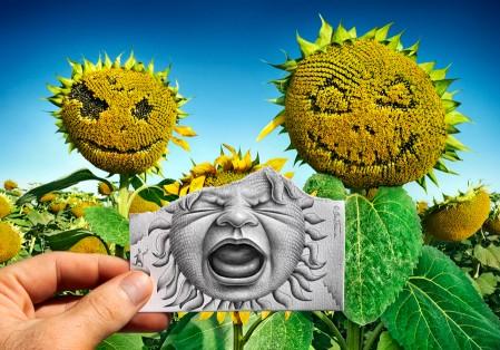 Artistul face artă cu ajutorul unor colaje de idei surprinzătoare. Ben Heine îmbină viziunele proprii asupra realităţii, expuse în desene, cu fotografii reale.
