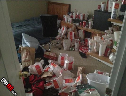 Stă martoră şi camera unui proaspăt student la Medicină, care s-a bucurat foarte mult de "beneficiile" fast-food-ului.