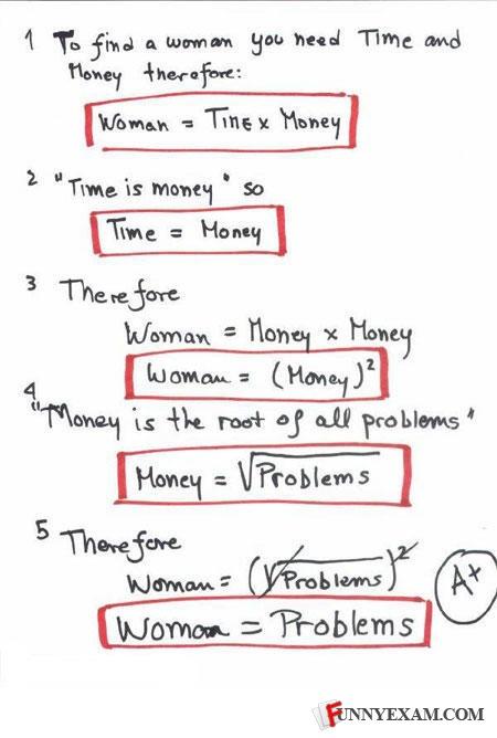 Mulţi cavaleri s-au dat bătuţi, considerând că este mult prea dificil să înţelegi ce vrea şi ce gândeşte de fapt o femeie. Însă se pare că un domn cu inspiraţie şi înclinaţii matematice a rezumat într-un mod foarte simplu modul în care le percepe el pe reprezentantele sexului frumos.