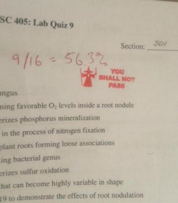 "You shall not pass" ("Nu vei trece!") este replica celebrului vrăjtor Gandalf din Stăpânul ineleleor, care a căpătat o nouă conotaţie scrisă pe foaia de test.