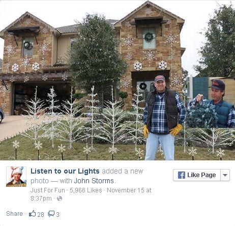 John Storms şi-a împodobit casa şi grădina cu peste 25 de mii de beculeţe colorate şi zeci de fulgi de nea supradimensionaţi care se aprind pe melodia "Let it go", coloana sonoră a filmului.