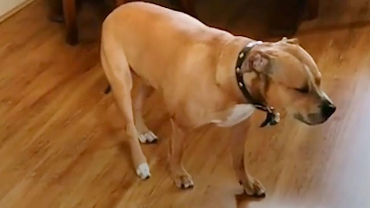 „Avea în jur de șapte luni și era în bucătărie și l-am privit cum mergea tiptil până la bolul său cu mâncare. Mi-am spus că ceva e în neregulă cu acest câine, l-am dus la veterinar, au zis că totul e bine. El face asta când încearcă să fure mâncare”.