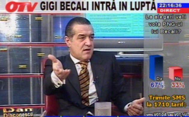 Surpriza nu a fost legată de discursul electoral plicticos al lui Becali, ci de noua înfăţişare a acestuia. Proaspăt tuns, ras şi frezat, candidatul George Becali părea desprins din filmul "Naşul". Ba chiar când lumina devenea difuză în apartamentul din Piaţa Romană preşedintele PNG începea să semene fizic cu celebrul actor Marlon Brando.