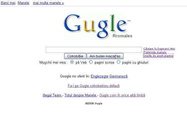 În imaginile următoare, vă prezentăm un ?Google? mai special. Sub denumirea de Gugle, aceasta este o variantă stilizată a celebrului motor de căutare.