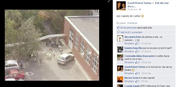 Imaginea, însoţită de comentariul "Vezi caprele din cartier", a adunat zeci de like-uri şi mai multe comentarii.