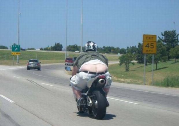 Imaginea asta a fost surprinsă pe o autostradă din SUA. Motociclistul a fost claxonat de toţi şoferii care au trecut pe lângă el