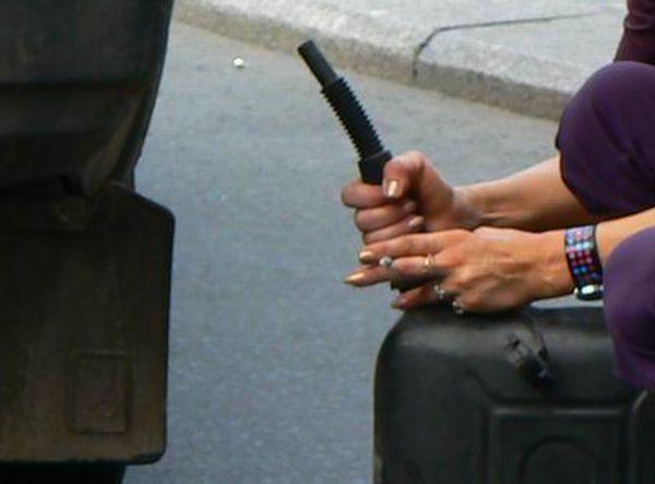 Însă, inconştienţa ei a şocat lumea: la o privire mai atentă, se poate vedea cum lângă canistră femeia ţine o ţigară APRINSĂ. Numai norocul a ţinut-o departe de o catastrofă.