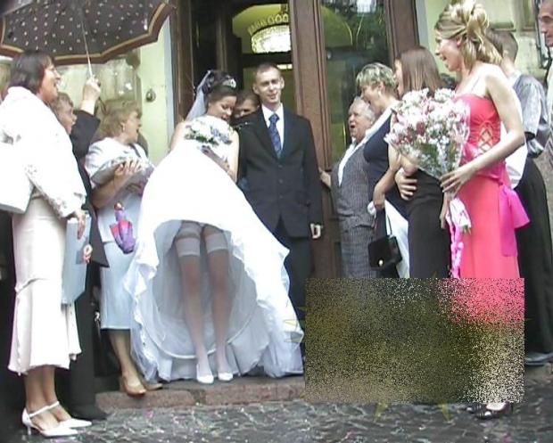 De bucurie că a devenit soţia iubitului ei, această mireasă a făcut un gest care i-a lăsat mască pe invitaţi, chiar la ieşirea din biserică. Aceasta şi-a ridicat prea tare rochia de mireasă, şi toată lumea a văzut ce are pe dedesubt.