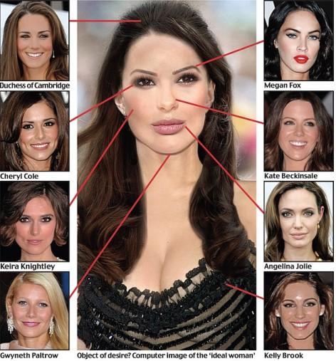 Astfel, buzele Angelinei Jolie, sprâncenele lui Megan Fox, părul Ducesei de Cambridge şi bărbia lui Gwyneth Paltrow şi-au adus fiecare aportul la chipul perfect.