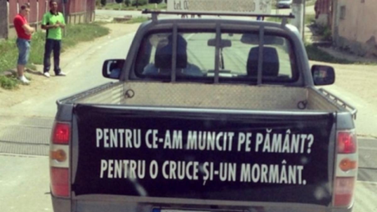 Însă o astfel de firmă din Alba a atras atenţia internauţilor prin mesajul pe care l-a scris pe un dric:"Pentru ce-am muncit pe pământ? Pentru o cruce şi-un mormânt".