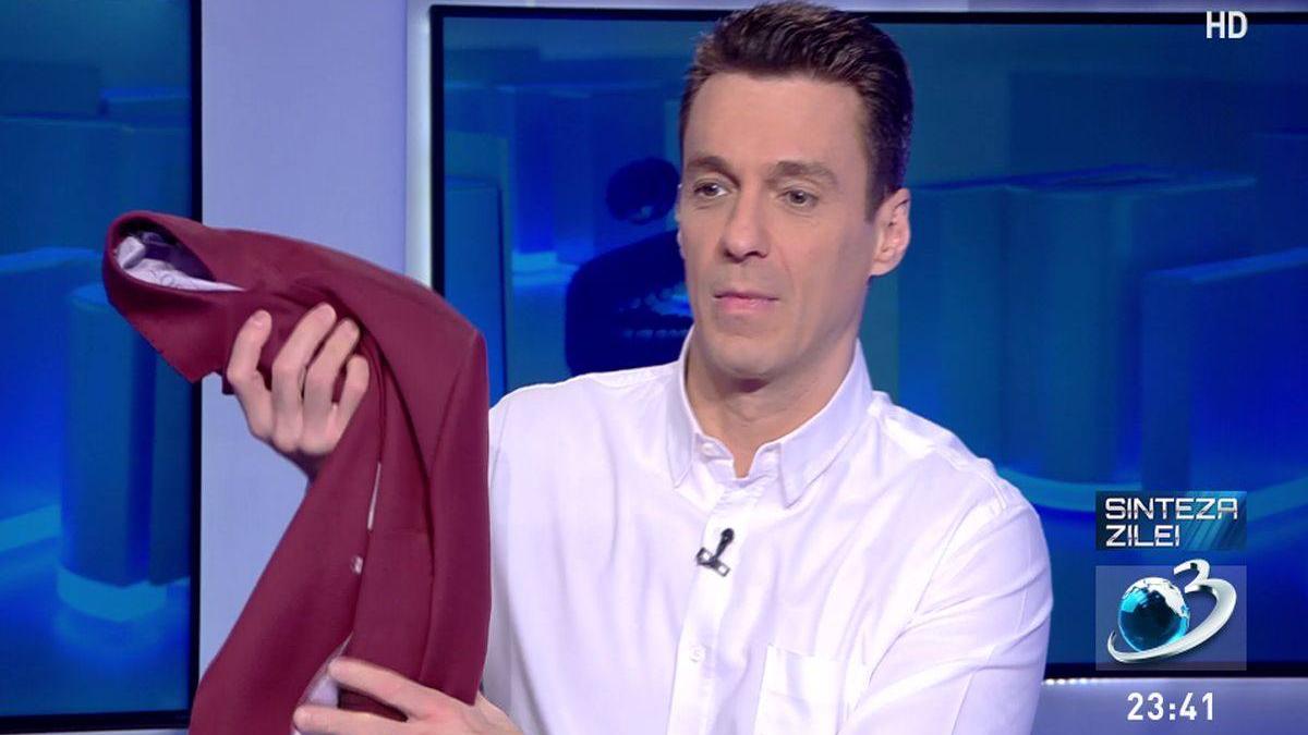 ”În seara asta nu numai că este cămașa care nu mai are nasturi, este exact în aceeași formație. Cu sacoul roșu. Există ceva mai tare pe planeta asta? Nu ai cum să te ascunzi de ăsta. Butoni, mai multe perechi, i-am aruncat cu mâna mea la coșul de gunoi. Am zis de o sută de ori, nu se rezolvă, îi aruncă. Butonii se întoarce. I-am aruncat în Dâmbovița. Sunt foarte curios dacă la ora asta sunt niște scafandri... Nu ne-a omorât Băsescu, dar ăia de la garderobă îți pot provoca atac cerebral în lanț” a spus Mircea Badea.