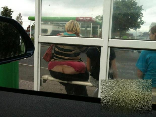 Atât femeile cât şi bărbaţii care suferă de obezitate morbidă şochează prin schimbările trupului lor, devenind dizgraţioşi. Este şi cazul acestei femei, care a fost surprinsă în timp ce aştepta autobuzul.