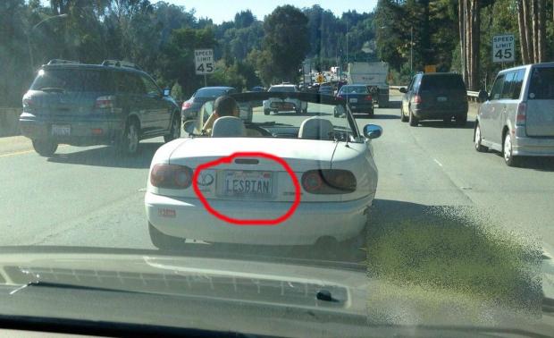 Libertatea de expresie este prezentă peste tot, chiar şi în ceea ce priveşte numerele de înmatriculare ale maşinilor. Aşa se face că un american, total neinspirat am putea spune, şi-a pus la autoturism o plăcuţă de înmatriculare pe care scria "Lesbian".