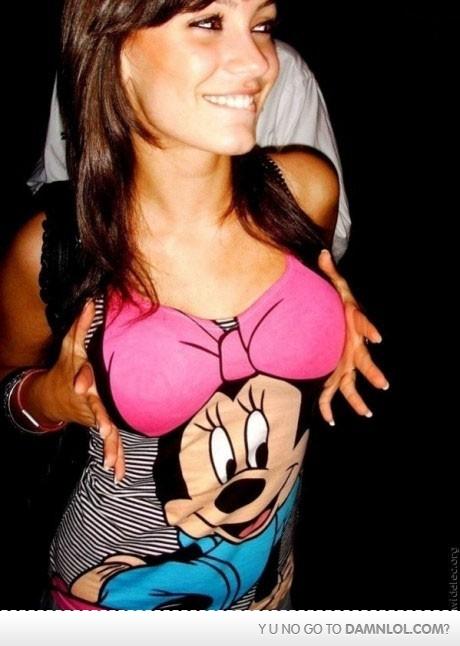 Tânăra s-a îmbrăcat în club într-un maieu care avea imprimata fotografia lui Minne, iar tânăra a ştiut foarte bine să îl pună în valoare.