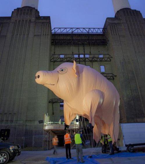 Un porc zburător de culoare roz a putut fi văzut ieri deasupra Londrei. Lung de nouă metri, ineditul balon a atras atenţia tuturor celor care au trecut prin centrul metropolei britanice. El a fost înălţat într-o încercare de a reface imaginea de pe albumul "Animals" a celor de la Pink Floyd.