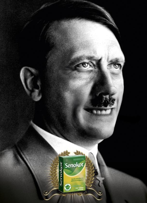 Reclama sună cam aşa: Constipaţia poate fi frustrantă, înnebunitoare, iritantă şi agravantă. În cazul în care o persoană a fost în mod constant constipată şi a simţit acele emoţii continuu, sigur nu este cea mai simpatică persoană din lume. Din fericire, Senokot poate remedia cele mai grave cazuri de contipaţie şi poate ajuta chiar şi un dictator cu retenţii anale. Când vedem cei mai teribili dictatori ai istoriei, vedem bărbaţi reci care par frustraţi. Văzând aceşti oameni, cu o expresie facială foarte diferită decât cea cu care suntem obişnuiţi, le putem prezenta cu eficacitate Senokot.