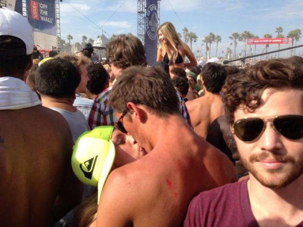Un tânăr s-a gândit să facă un experiment cel puţin ciudat. Se pozează alături, în faţa sau în spatele cuplurilor care se sărută pătimaş în diferite locuri: pe plajă, în restaurante, cluburi sau la petreceri.