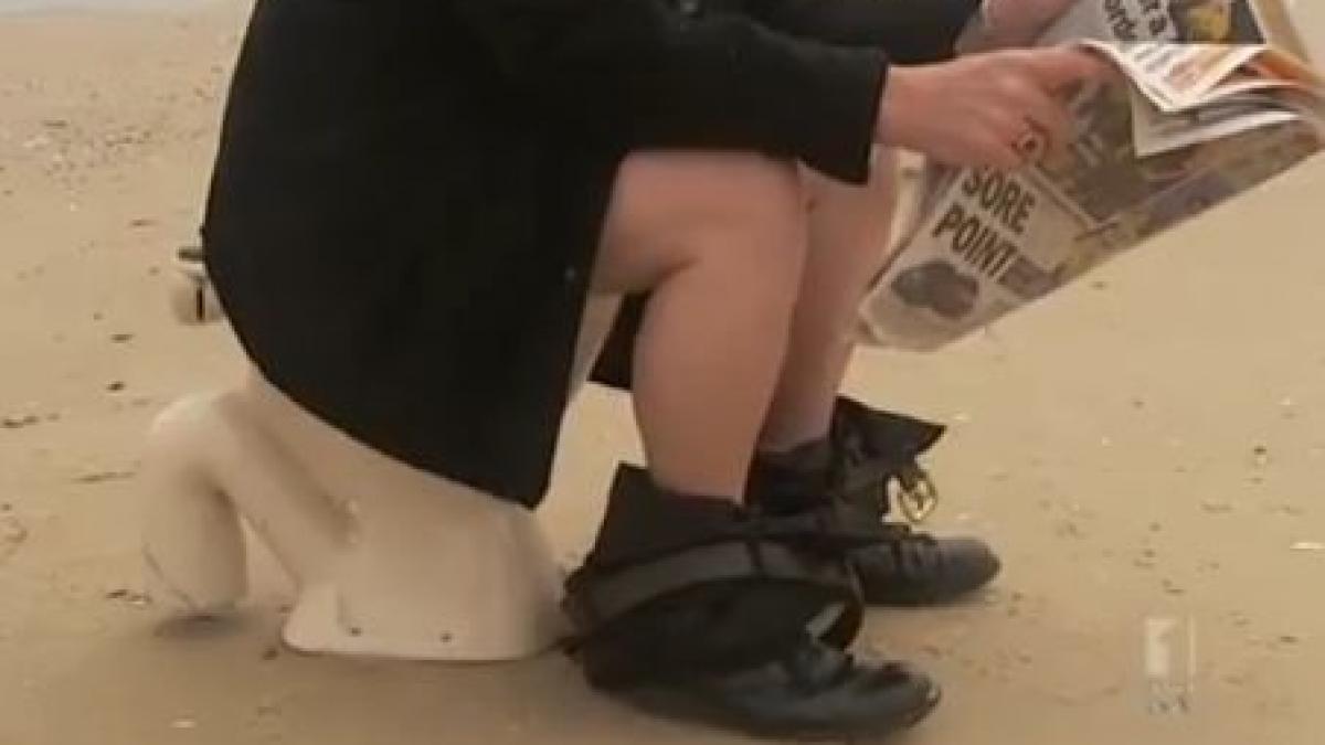 Artistul care a organizat acest protest neobisnuit este nemulţumit că turiştii sunt nevoiţi să parcurgă distanţe mari până la cea mai apropiată toaletă. Astfel, mersul la plajă nu mai este deloc relaxant şi distractiv.