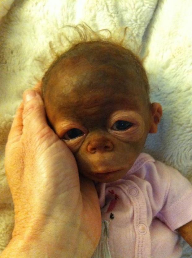 Puţini ştiu însă că drăgălaşul animal este doar o copie din lut, făcută cu mare dibăcie de un artist, fotografiată şi postată apoi pe internet. (în loc de păr sunt lipite pe capul "puiului" câteva fire de mohair)