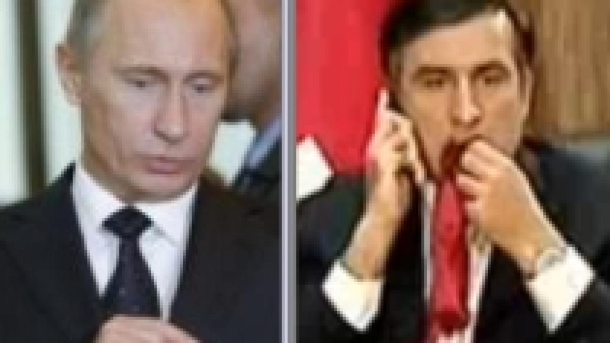 "Invitatul lui Iuşcenko îşi va înnoda cravata". Putin făcea aluzie la un video care îl arată pe Saakaşvili cu vârful cravatei în gură, mestecând-o, în aşteptarea intrării pe un post tv.