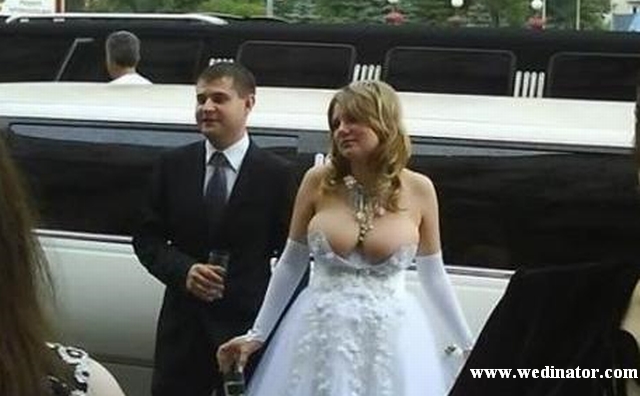 Se pare că fotografia a fost realizată în Rusia. Femeie a fost pozată în timp ce cobora dintr-o limuzină. Partea de sus a rochiei de mireasă constă în două bucăţi minuscule de material care acoperă numai o mică parte din sânii imenşi ai femeii.