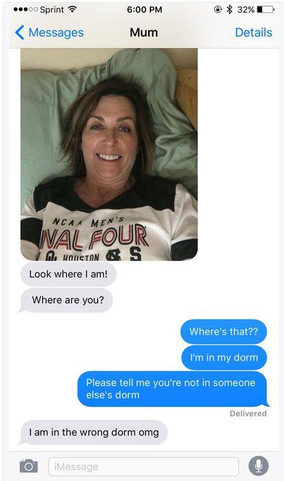 După ce a traversat SUA pentru a-și vedea fiica de 18 ani care studiază la Universitatea din Utah, Deanna Pilling a vrut să-și surprindă fata într-un mod inedit. A intrat în camera de cămin în care credea că locuiește fata ei, s-a așezat în pat și apoi și-a făcut un selfie. I-a trimis poza fiicei sale împreună cu următorul mesaj: