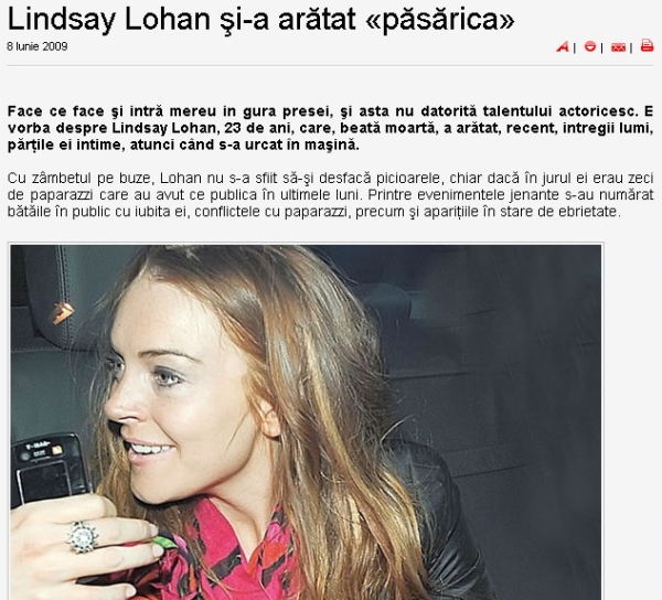 Mai interesant decât faptul că ?Lindsay Lohan şi-a arătat păsărica? este anunţul din imediata apropiere a articolului.