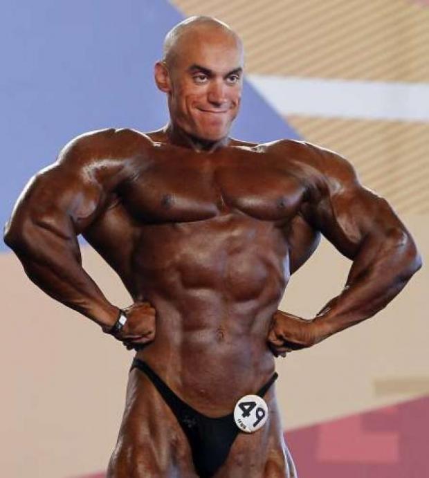 Un participant la concursul Arnold Classic Europe a uimit judecătorii atunci când a apărut pe scenă cu un bronz fals aplicat doar de la gât în jos.