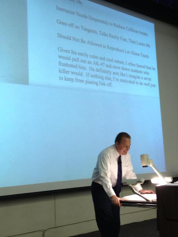 Profesorul din această imagine, de exemplu, a dat peste un mesaj nu tocmai măgulitor la adresa lui .