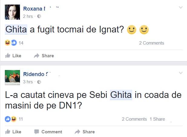 După dispariția lui Sebastian Ghiţă, românii şi-au pus la lucru imaginaţia pentru a-l lua peste picior pe fostul deputat. Pe Facebook, glumele şi comentariile despre fugar se înmulțesc de la o clipă la alta.