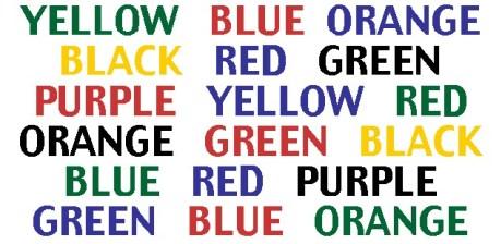 Încearcă să SPUI culorile, nu cuvântul care este scris. Mai bine de 90% din cei care au încercat nu au reuşit să o facă: