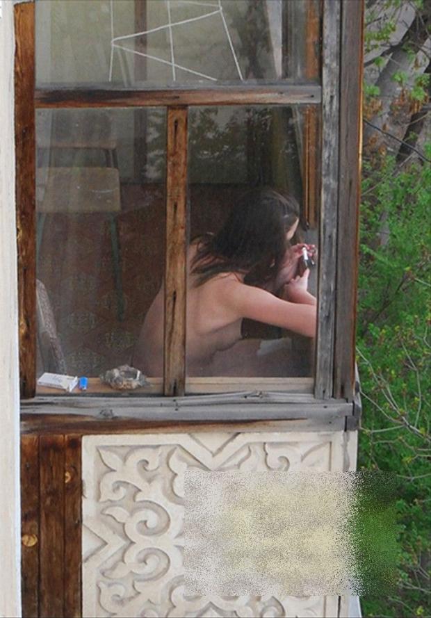 Apariţia ei a stârnit imediat atenţia vecinilor, care au ieşit la geamuri pentru a vedea show-ul din balcon. Unul chiar a pus mâna pe aparatul foto şi s-a pus pe făcut poze, pe care le-a postat imediat pe internet.