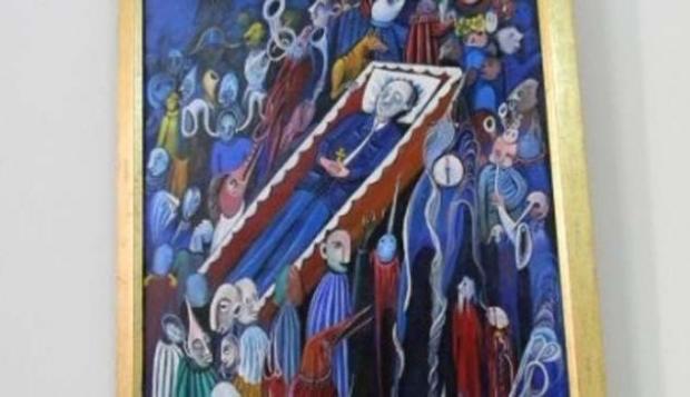 Al doilea tablou al pictorului Calistrat Robu este la fel de scandalos. Intitulat "Moartea celor care au creat criza", în tablou apare Traian Băsescu mort, în coşciug.