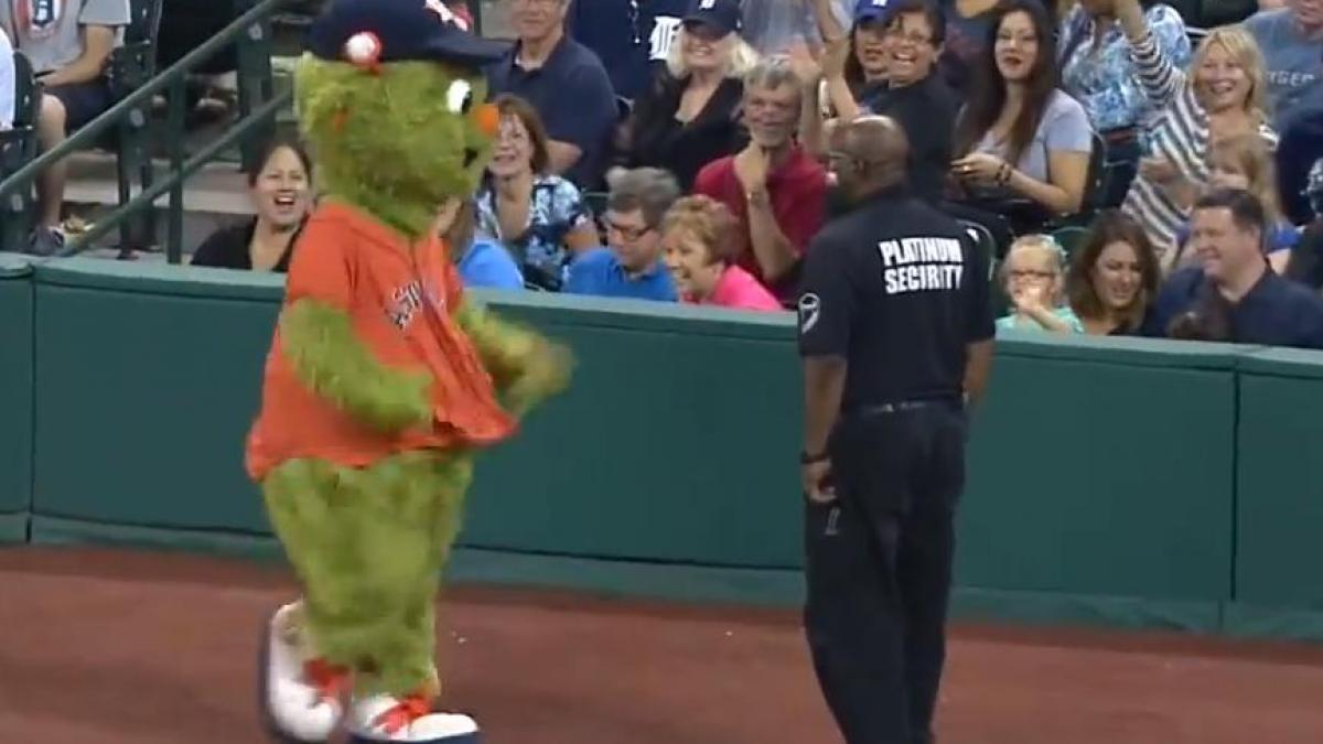 Mascota echipei de basseball Houston Astro's a început un "război" pe care credea că îl va câştiga uşor. Adversar, un agent de securitate. Ce s-a întâmplat a uimit spectatori, telespectatori şi staff, deopotrivă.