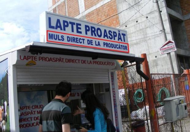 Acest principiu pare să fi fost dus la extrem de proprietarul magazinului din imaginea următoare. Toată lumea poate să vândă lapte, dar nimeni pe piaţă nu are lapte „muls direct de la producător”, pare să-şi fi zis afaceristul.