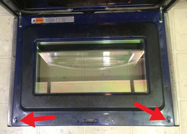 Deschide ușa cuptorului și caută balamalele ce țin ușa de aragaz. Trebuie să le le blochezi , trăgând de ele spre tine cu ajutorul unei șurubelnițe.