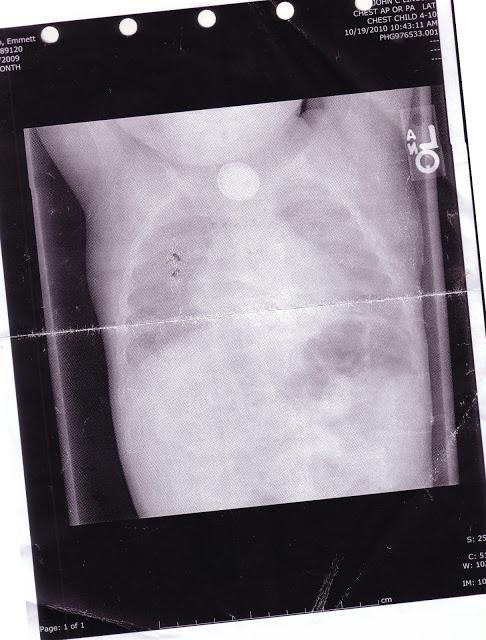 Echipa de doctori i-au făcut o radiografie, au identificat bateria pe film și au înțeles că acidul din mica baterie distruge esofagul și tractul gastro-intestinal al micuțului.