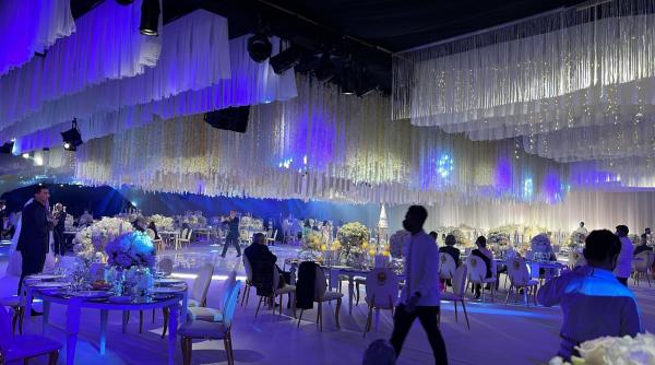 Palatul în care a avut loc nunta este o replică în stil tradițional a hotelului Burj Al Arab din Dubai.