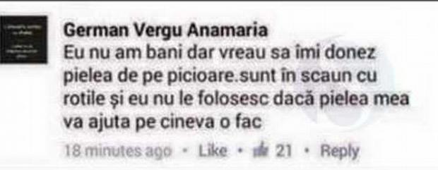 O solistă de muzică populară în vârstă de 23 de ani, rămasă paralizată de la brâu în jos în urma unui accident rutier, vrea să îşi doneze pielea de pe picioare pentru victimele tragediei din Club Colectiv, scrie voceatransilveniei.ro.