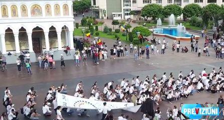 Flashmob în costume tradiţionale, pe ritmuri populare la Târgu Jiu. Patru sute de tineri îmbrăcați în ii au marcat într-un mod unic cei 100 de ani de la Marea Unire.