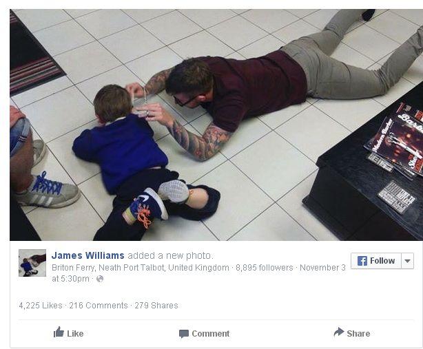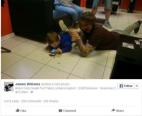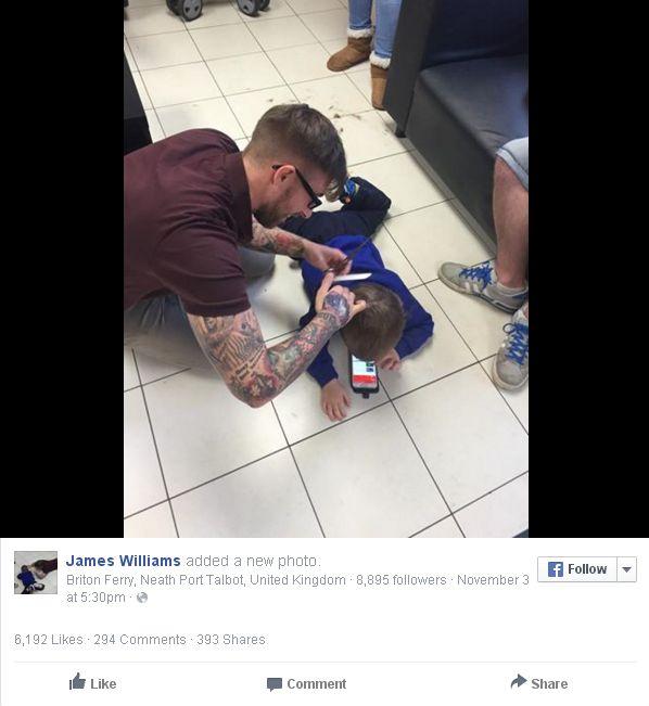 Pentru că micuţul Mason nu accepta nici in ruptul capului să-l lase pe James Williams să se apropie de podoaba lui capilară, frizerul a fost nevoit să inventeze o metodă specială de tuns. Timp de o lună s-a tot gândit cum să procedeze... Într-un final, i-a venit ideea salvatoare. I-a dat copilului un telefon cu care să se joace, s-a întins pe podea lângă el şi a început să-l tundă.