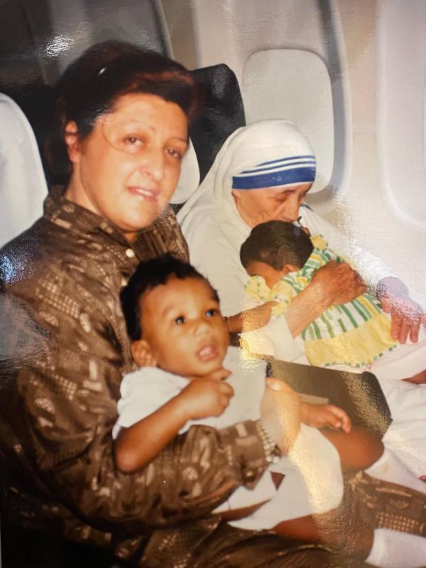A.C.: Totul a fost o coincidență a destinului. Tatăl meu, la acea vreme, era consilier regional pentru industriile mici și mijlocii din Lombardia, deci călătorea mult în lume. În acea perioadă, în ianuarie, era în China, iar la întoarcere trebuia să facă escală la Bombay și apoi să zboare de la Bombay la Milano. La Bombay a luat un avion aproape gol, era 9 ianuarie 1991. Tatăl meu s-a retras în spate ca să se odihnească împreună cu echipa lui, iar mama mea a stat singură, într-o altă zonă, într-un loc mai confortabil. La îmbarcare s-au așezat lângă ea două călugărițe, fiecare cu copii în brațe, iar una dintre ele purta vălul alb cu dungă albastră. Era micuță, firavă, puțin trecută de prima tinerețe. Avionul fiind aproape gol, s-a așezat lângă mama mea și timp de opt ore mama mea încă nu își explică cum a putut vorbi opt ore în engleză cu această călugăriță. Era Maica Tereza din Calcutta.