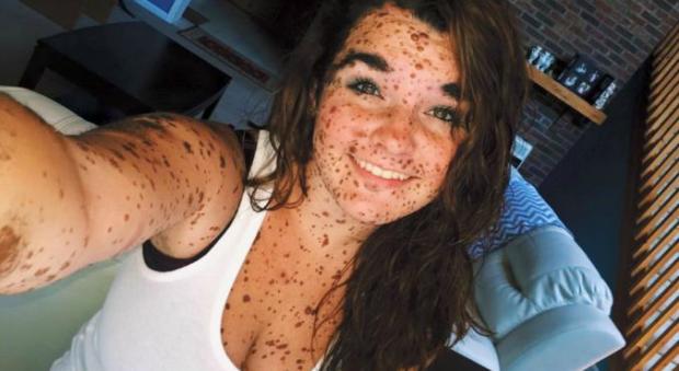 Trupul ei este plin de alunite si din acest motiv i se spune "fata dalmatian". Fata a povestit ca i-a fost foarte greu cand era mica fiindca cei din jur o tachinau si ii spunea "Dalmatianca", potrivit Mirror.co.uk.