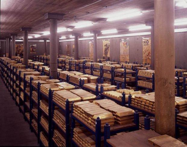 Banca Angliei este custodele aurului pentru circa 30 de ţări. Sunt cam 400.000 de lingouri de aur în subsolurile Londrei, care valorează undeva pe la 230 de miliarde de euro. Adică, circa o cincime din aurul mondial stă în cripta Băncii Angliei. E atât de mult aur încât există o limită a cât de multe lingouri pot sta unele peste altele, de teamă că întreaga vistierie – împreună cu Banca Angliei – se va scufunda în pământ.