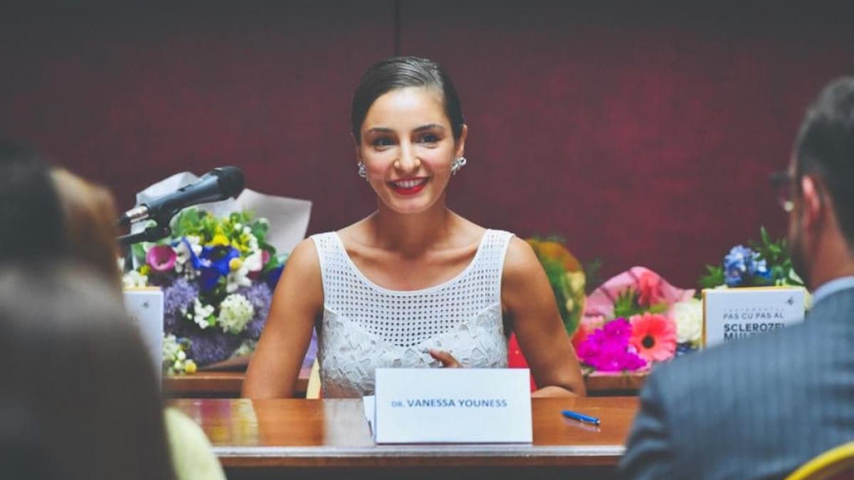 “Am plecat și în Italia la un neurolog renumit care a confirmat diagnosticul din țară. La 22 de ani nu m-am lăsat până nu am ajuns în Anglia, la însuși medicul care făcea medicația pentru scleroza multiplă. Din nefericire, mi-a pus același diagnostic. Speriată fiind de efectele adverse ale injecțiilor cu Avonex, medicația care nu vindecă boala, ci, doar îi încetineşte evoluţia cu 5%, am refuzat acest tratament pe al cărui prospect scria că reacţiile adverse care se întâlnesc în proporţie de 45% constau în depresie şi chiar cazuri de suicid. M-am întors în țară și m-am gândit serios că trebuie să accept boala, însă nu până să caut și soluții alternative. Am început să privesc boala ca pe cea mai mare șansă a vieții mele, iar când o prietenă de la Cluj mi-a povestit de rezultatele fantastice obținute de domnul profesor Ștefan Stângaciu, un apifitoterapeut de renume internațional, l-am sunat și l-am întrebat dacă mă poate ajuta. Protocolul său este extrem de detaliat: de la ce alimentație trebuie să mănânci, la ce oră e nevoie să mergi la culcare, ce tip de sport să faci, totul individualizat pe situația pacientului. Mi-amintesc că i-am spus orice e nevoie, doar să nu ajung într-un scaun cu rotile. Asta era cea mai mare frică a mea. În toți anii care au urmat, am parcurs cu disciplină protocolul de tratament apifitoterapeutic prescris de către dr. Stângaciu și am făcut un control RMN la fiecare început de an, să pot avea o evidență comparativă anuală asupra evoluției bolii. Spre bucuria noastră, rezultatele analizelor susțin că boala nu avansează, ba chiar a regresat, având în vedere că leziunile avute (4 leziuni care mi-au fost descoperite la diagnosticare) începuseră să se cristalizeze, ajungând tot mai inactive de la an la an fără să provoace vreun simptom”, își amintește dr. Vanessa Youness.